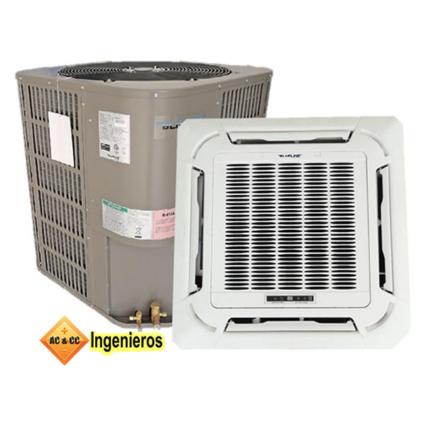 BLUE Line Cassette Orión, aire acondicionado de eficiencia SEER 10, económico. Refrigerante R-410A, ecológico. Eficiencia energética buena. Recomendado para salas de juntas, s